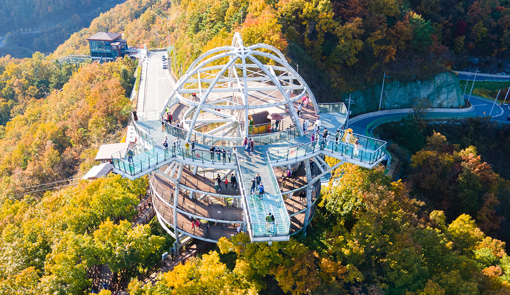 아찔한 높이의 스카이워크에서 내려다보는 단풍 풍경은 짜릿한 경험을 선사합니다. 단풍철에는 스카이워크 주변이 더욱 화려하게 물들어 인생샷을 남기기에 좋습니다. 스카이워크뿐만 아니라 주변에는 다양한 산책로와 조형물이 있어 둘러보는 재미를 더합니다.