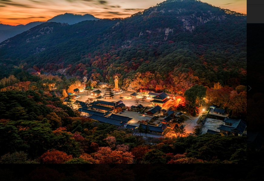 천년고찰 법주사는 웅장한 불교 건축물과 아름다운 자연이 조화를 이루는 곳입니다. 특히, 가을이면 붉게 물든 단풍이 사찰 전체를 감싸 안아 장관을 이룹니다. 국보 제55호인 팔상전은 목조 건축물의 정수를 보여주며, 석련지는 고즈넉한 분위기를 더합니다. 단풍철에는 사찰 주변을 따라 조성된 산책로를 걸으며 다양한 문화재와 자연을 함께 감상할 수 있습니다.