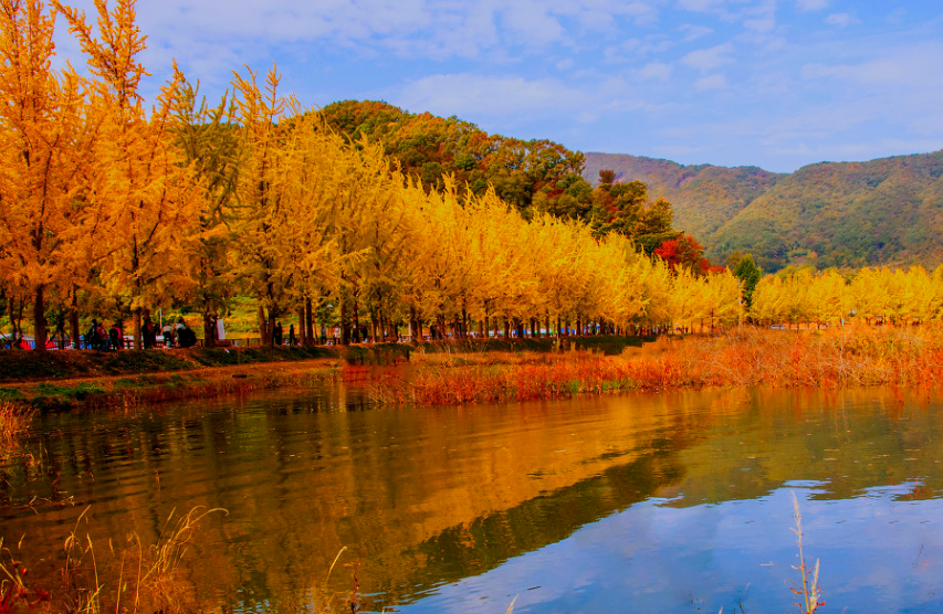 넓게 펼쳐진 호수 위에 그림처럼 떠 있는 섬과 단풍이 어우러져 한 폭의 수채화를 연출합니다. 유람선을 타고 호수를 유람하며 단풍을 감상하는 것도 좋은 방법입니다. 특히, 황금빛으로 물든 은행나무와 붉은 단풍잎이 호수에 비치는 모습은 가히 환상적입니다. 주변에는 다양한 숙박 시설과 레저 시설이 있어 여유로운 휴식을 즐기기에 좋습니다.