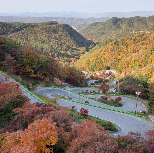 속리산 자락에 위치한 말티재 전망대는 굽이굽이 펼쳐진 도로와 단풍이 어우러져 드라이브 코스로 인기가 높습니다. 전망대에 오르면 멀리 속리산의 웅장한 모습과 붉게 물든 단풍잎이 한눈에 들어와 가슴이 뻥 뚫리는 듯한 시원함을 느낄 수 있습니다. 특히, 해 질 녘에는 붉게 물든 하늘과 단풍잎이 어우러져 더욱 아름다운 풍경을 선사합니다.