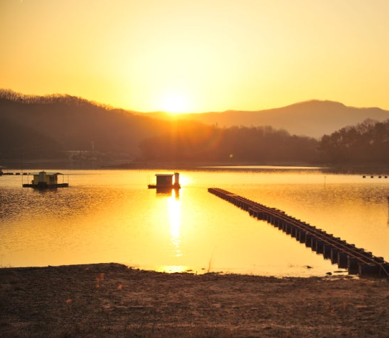 잔잔한 호수와 주변 풍경이 어우러져 아름다운 일출을 선사하는 곳입니다. 특히 물안개가 피어오르는 날에는 더욱 환상적인 풍경을 연출합니다.